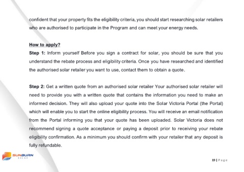 informed decision. They will also upload your quote into the Solar Victoria Portal (the Portal)