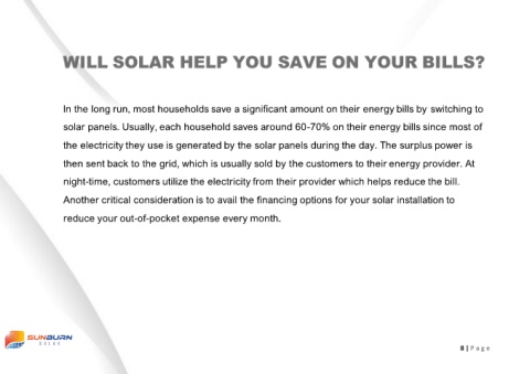 solar panels. Usually, each household saves around 60-70% on their energy bills since most of