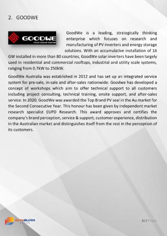 service. In 2020, GoodWe was awarded the Top Brand PV seal in the Au market for