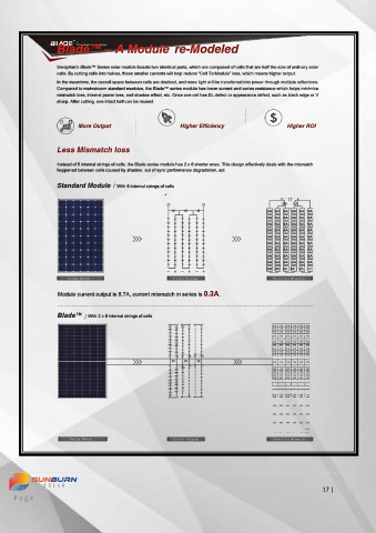 Instead of 6 internal strings of cells, the Blade series module has 2 x 6 shorter ones. This design effectively deals with the mismatch