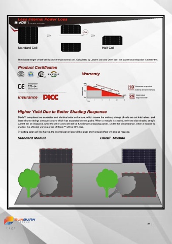 Instead of 6 internal strings of cells, the Blade series module has 2 x 6 shorter ones. This design effectively deals with the mismatch