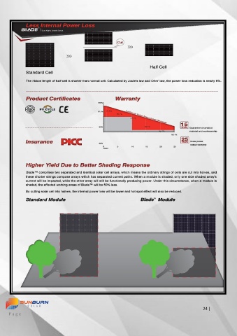 mismatch loss, internal power loss, and shadow effect, etc. Once one cell has EL defect or appearance defect, such as black edge or V