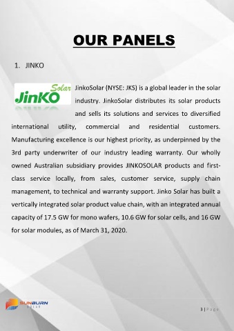 owned Australian subsidiary provides JINKOSOLAR products and first-