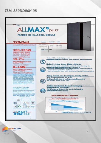 POSITIV E POWER TOLERANC E • Integrated LRF(Light Redirecting Film) to enhance power, specially for